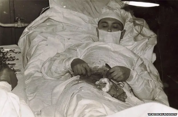 3. Подготовка: Рогозов сам проинструктировал своих помощников (метеоролога и инженера-механика). Один держал зеркало и направлял свет настольной лампы, второй подавал инструменты. На случай, если ассистенты упадут в обморок (а им действительно становилось плохо), врач проинструктировал их, как вколоть ему адреналин.